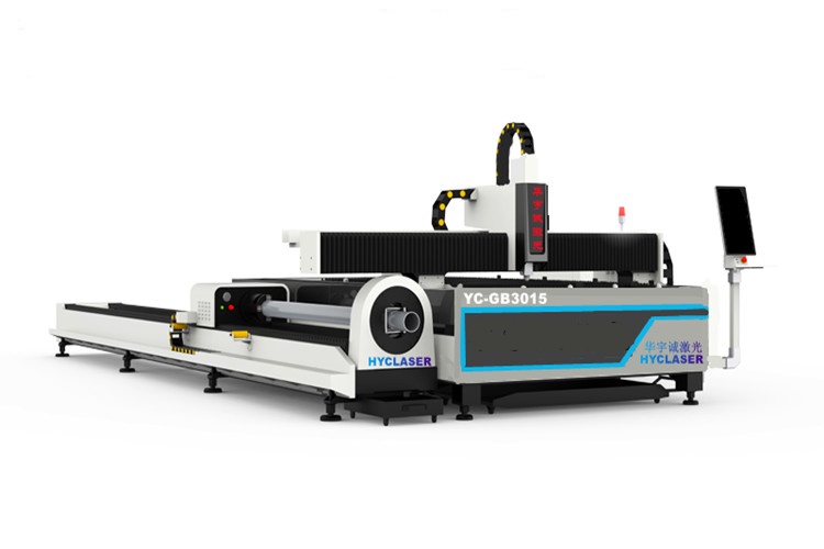 YC-GB3015-1500/2000/3000/4000/6000w激光切割機為管板一體機,可以切割3000mm×1500mm(可選4000mm×1500mm、6000mm×1500mm、4000mm×2000mm、6000mm×2000mm、8000mm×2500mm可訂做)幅面的板材,具備輔助切管功能,可以切割圓管Ф25mm-Ф160mm,方管25mm×25mm-100mm×100mm(對角線30mm-160mm),厚度3-16mm,長度6-12m,切縫小,且熱效應小,尤其適合金屬薄板(管)加工。